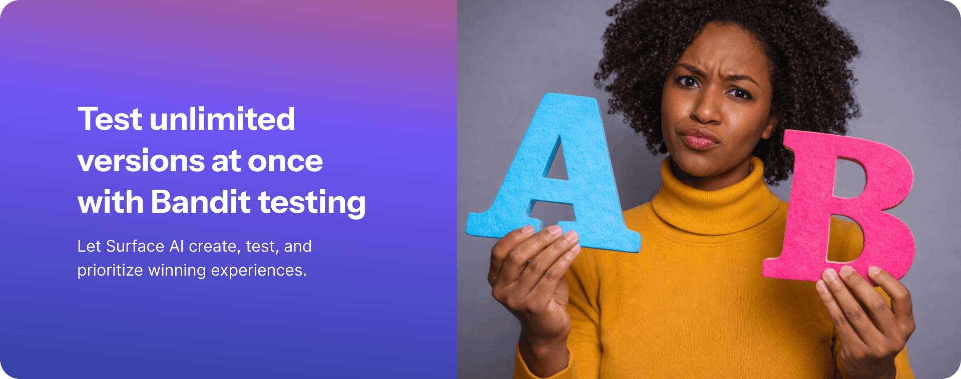 Unsure whether a grid or list layout will convert better? Wondering if your “Buy Now” CTA should be more direct or more playful? Surface AI’s agentic workflows let you instantly generate as many layout and copy variants as you need. With one click, you can launch these variants into live traffic—so your shoppers are telling you, in real time, what works best.