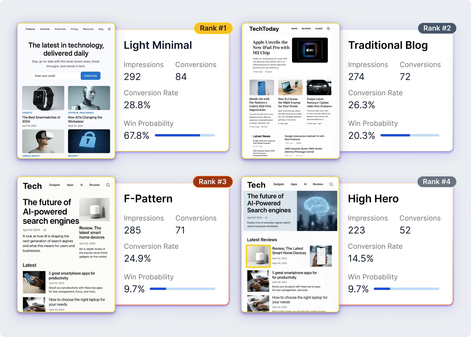 Once you get traffic on your site, don’t lose it to a confusing user journey. With our bandit testing techniques, your valuable potential leads always see your best performing content, without having to slog through a long A/B testing period to find out what works.